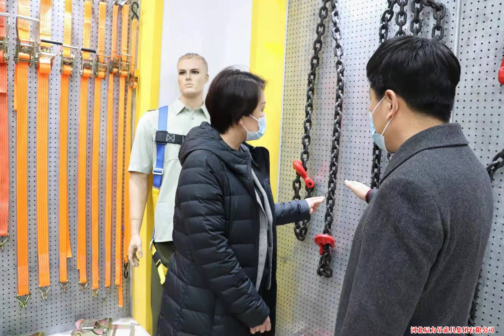 在產(chǎn)品展示廳里,劉丹區(qū)長聽取了蘇總經(jīng)理對吊裝帶、起重鏈條、手拉葫蘆等產(chǎn)品的介紹后,對我公司實(shí)力、產(chǎn)品質(zhì)量表示進(jìn)一步肯定。同時(shí)詢問了公司在發(fā)展建設(shè)中存在的問題與困難,并對下一步發(fā)展建設(shè)提出了寶貴建議。